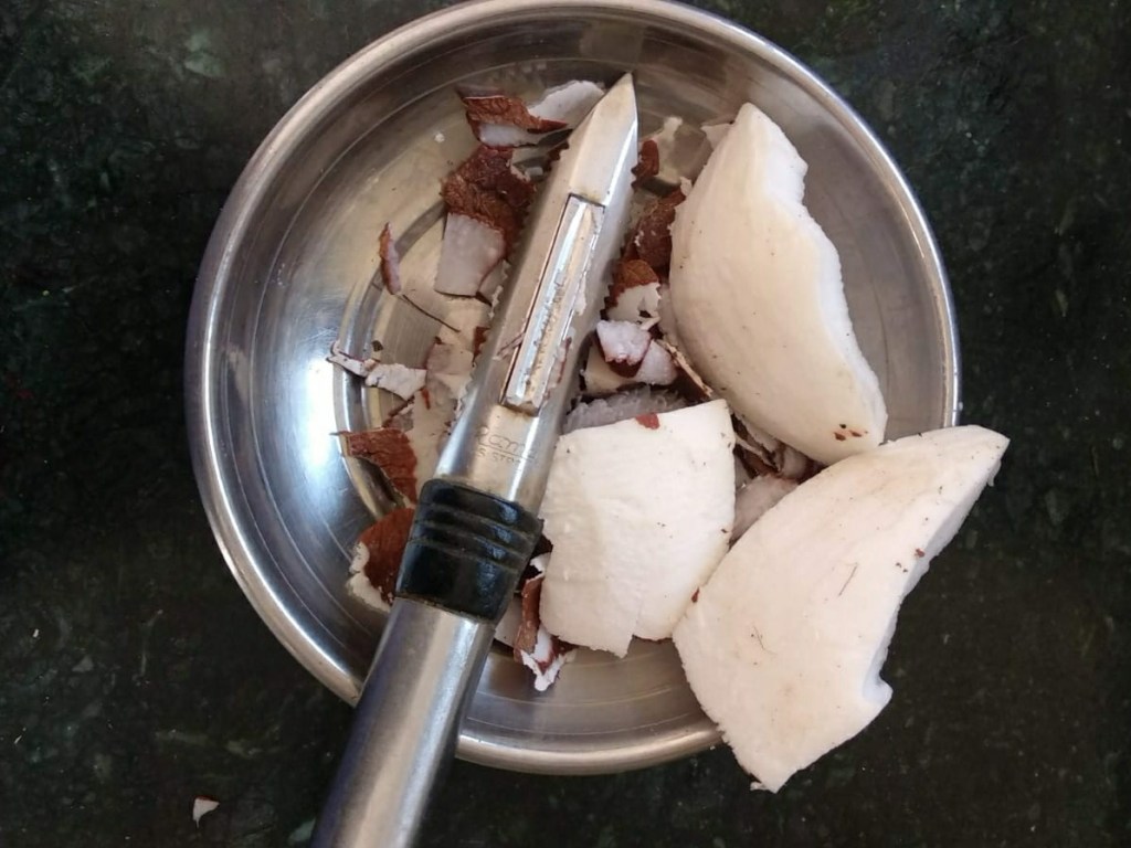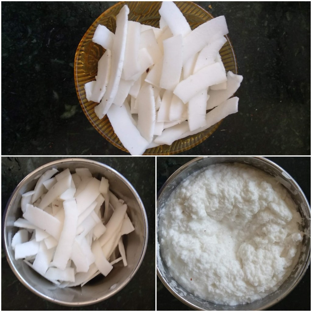 Although the main ingredient is fresh ground coconut, there is also a tiny amount of rice used. It gives thickness to the kheer and also makes it creamy. Both rice and fresh coconut ground separately and are then cooked in milk, until creamy and rich.