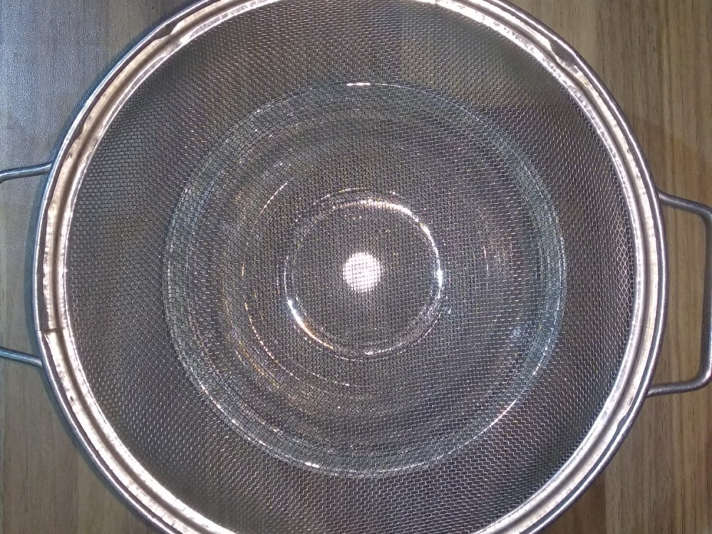 • A fine dense paste is filtered into the bowl kept below the strainer.