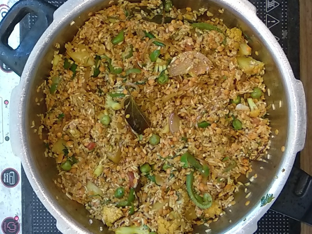 • Saute it properly till all the masale’s get nicely coated to the rice and dal.