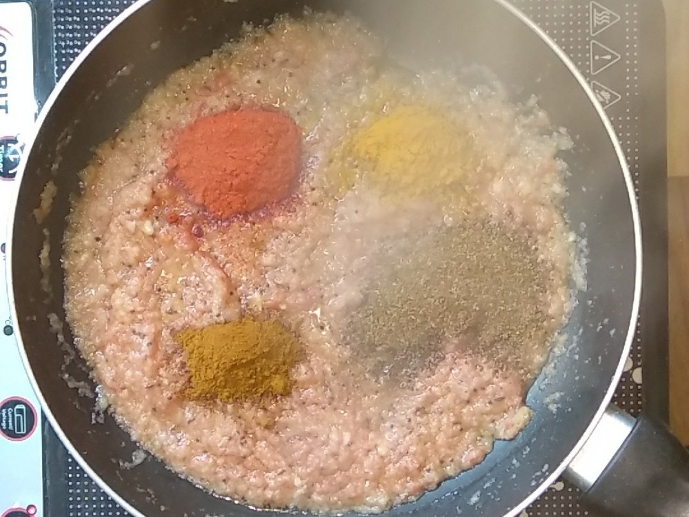 - Add red chilli powder,turmeric,garam masala,coriander powder and garam masala.