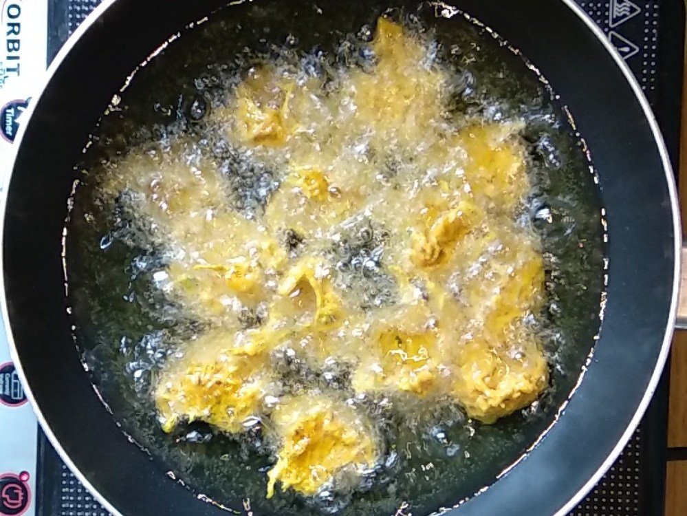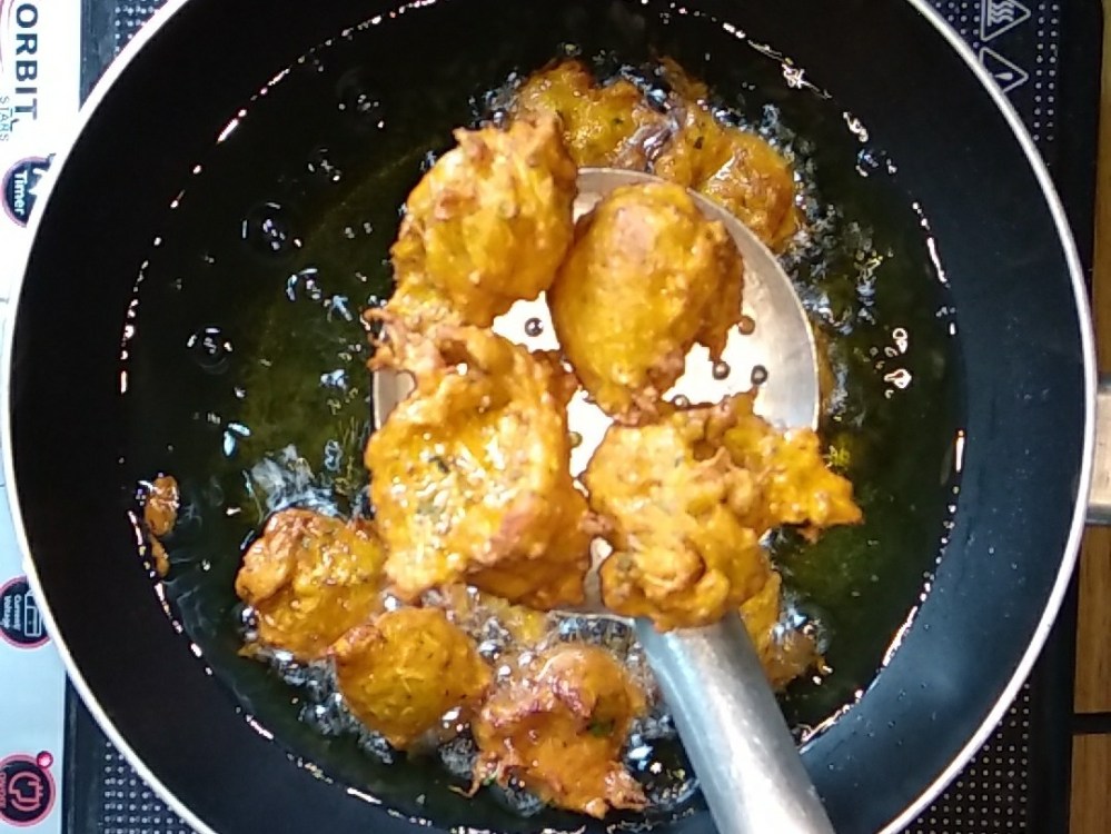 - Once the oil gets heated up pour the kofta batter with the help of spoon or hands into the oil.