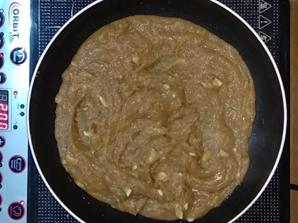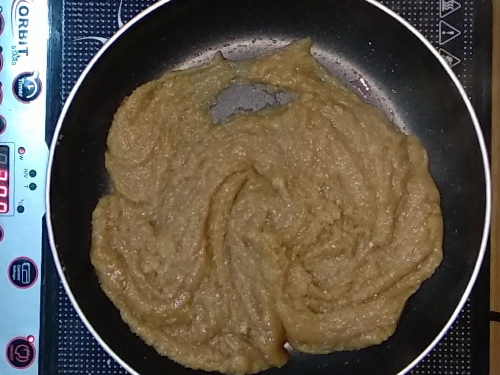 - Once it is roasted you will see a the flour changes its colour to brown colour also it releases a nutty aroma.
