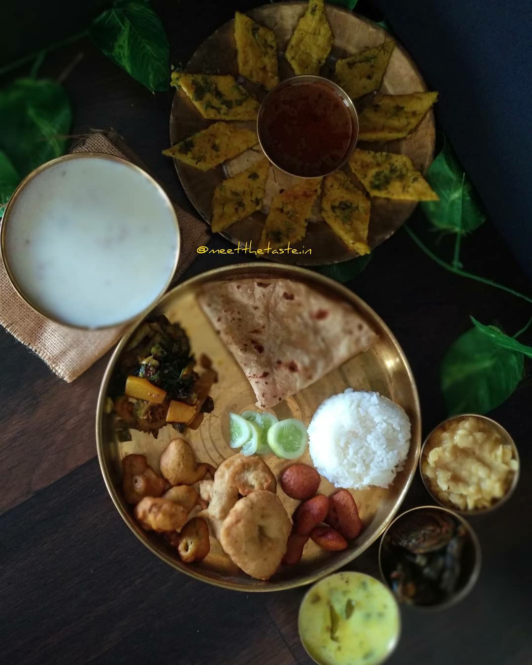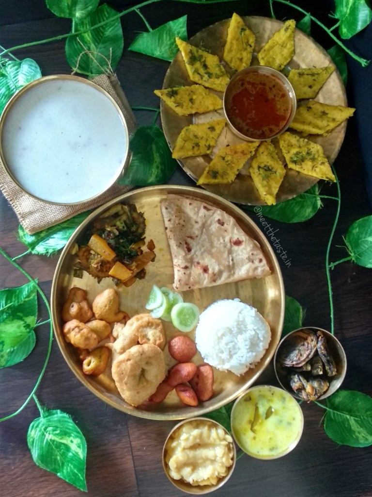 The food that is offered varies as per the regions.Here I am showing you the food that is offered as per Maharashtrian way..