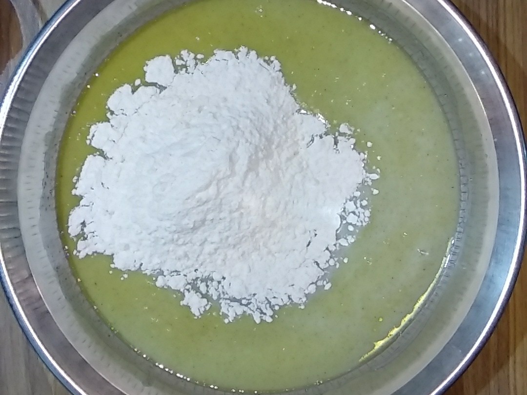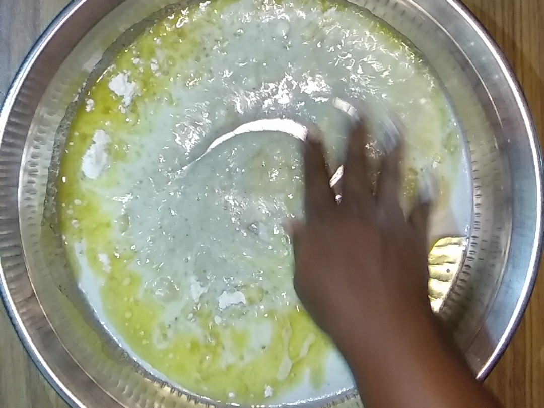 - Add the maida to the above mixture in batches.