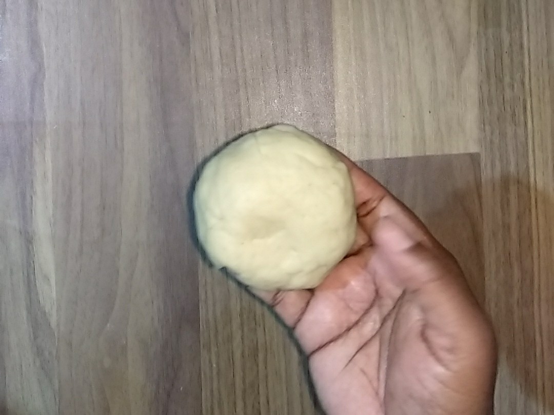 - Now take a small ball shaped portion from the kneaded dough.