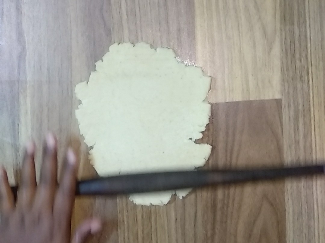 - Roll it in circular motion into a round shaped chapati,