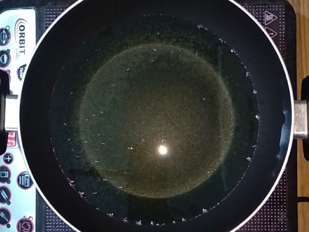 - Warm the oil in a pan or kadhai.