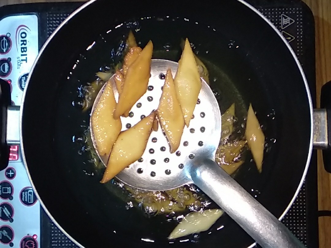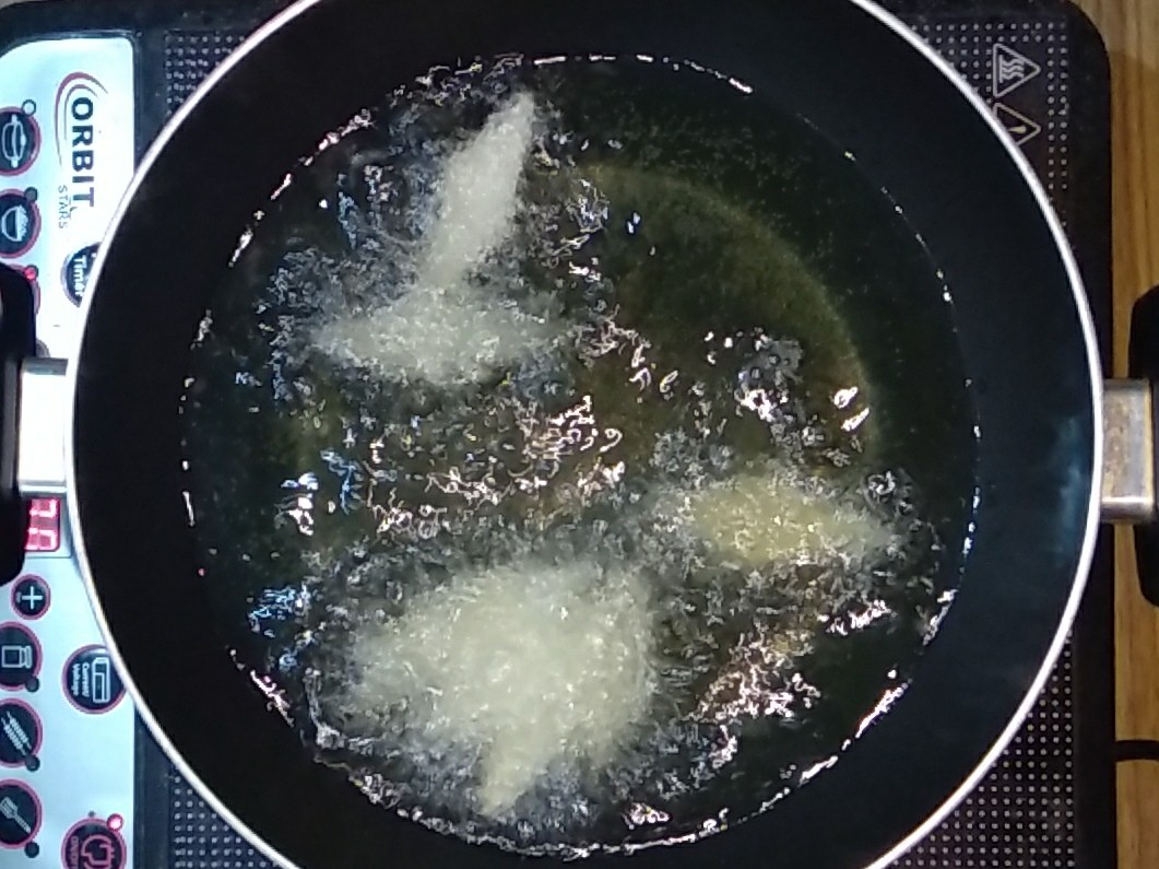 - I have fried them in regular oil.You can fry them in vanaspati ghee also. Its totally optional.