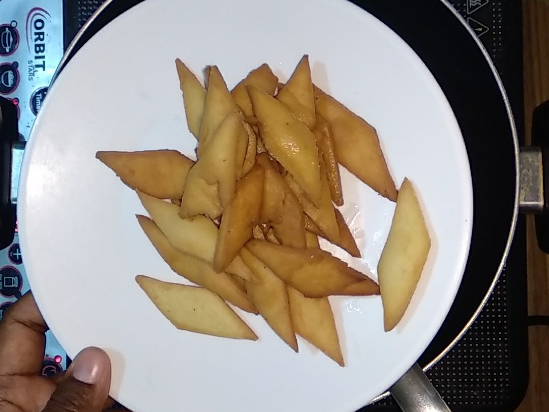 - Fry the shankarpale on medium flame.