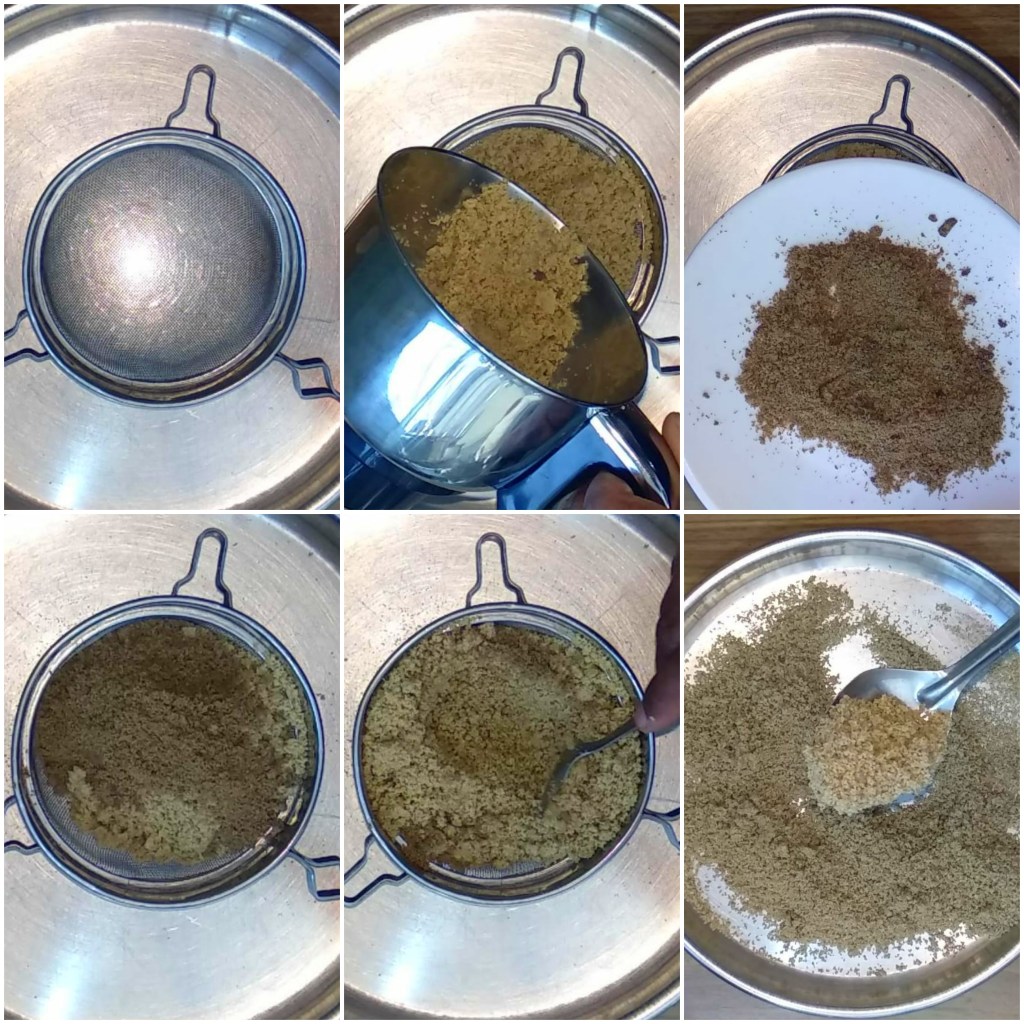 - Now sieve both the grinded mixtures so that no lumps remain back and also everything gets mixed properly.
