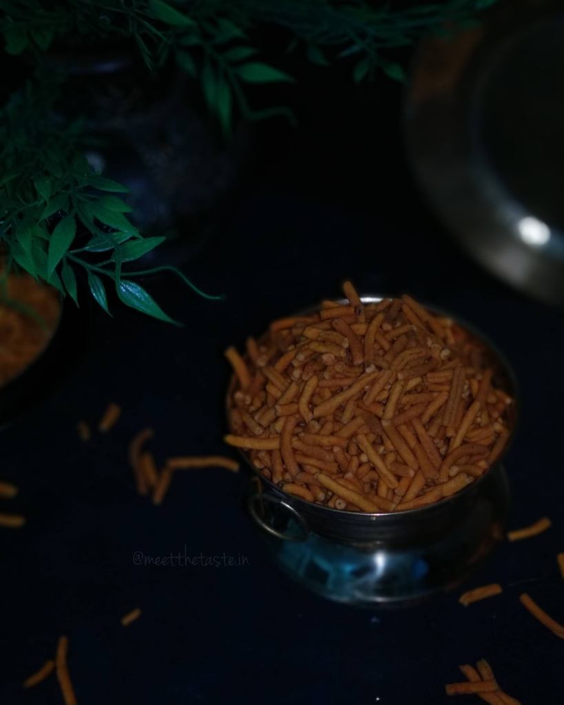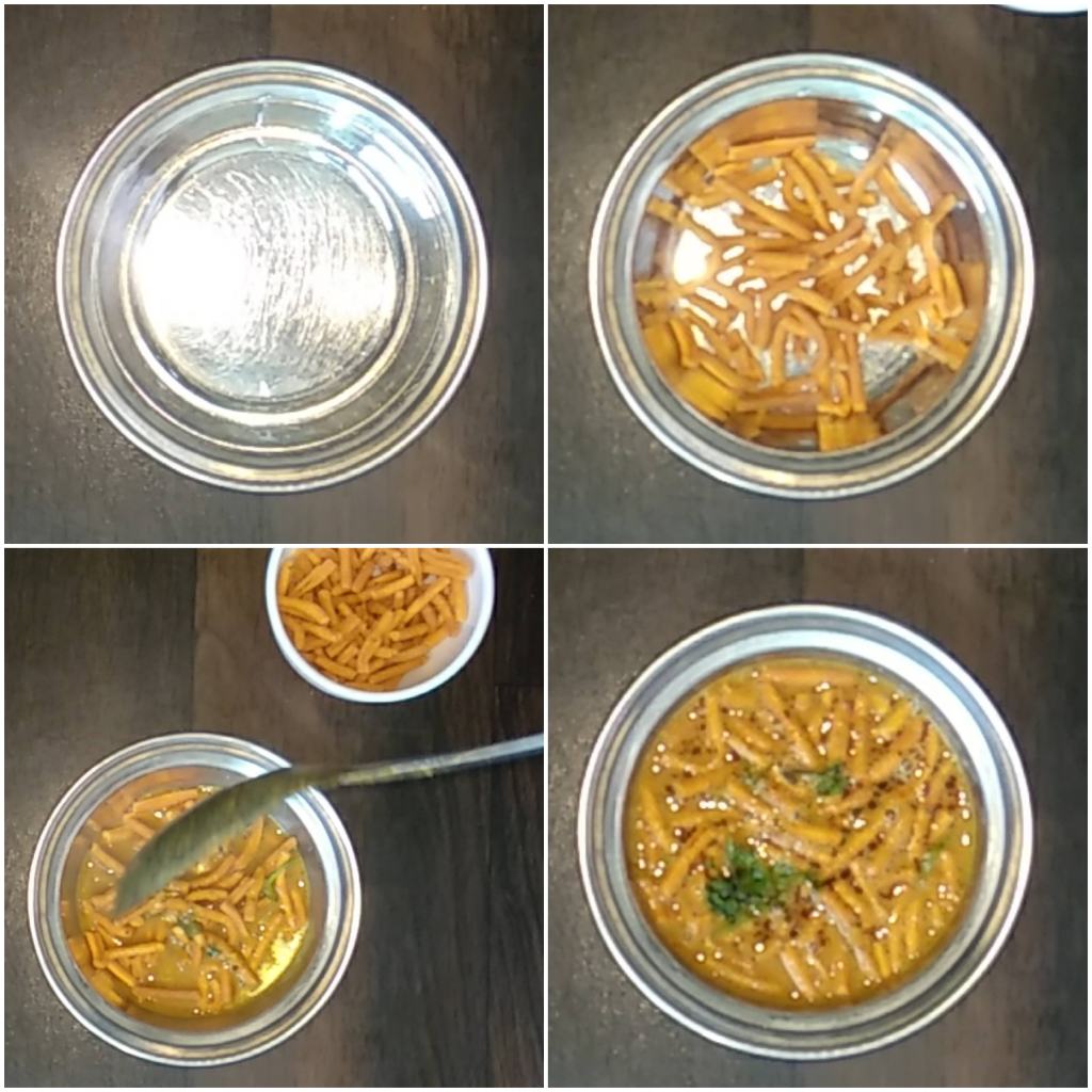 Preparing sev at home is not hard job.Will soon post the recipe of sev.But when you are short of time it is easily available at local farsan marts.