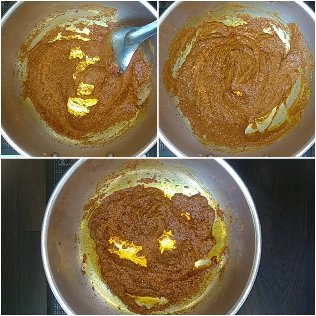 But here I am making it in dhaba style.It has a extra spicy touch from the extra whole spices added.In this type first whole spices are added and then onions,tomatoes,dry coconut along with ginger-garlic,raw coriander seeds,poppy seeds,homemade garam masala,chilli powder and kasuri methi are added.Finally a touch of fresh cream is given so that the curry gets a smooth texture.