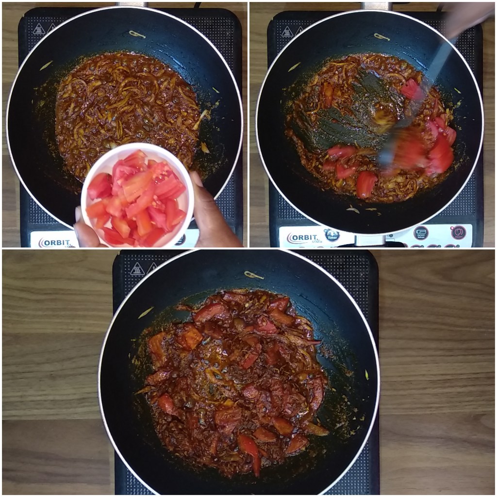 - Add the sliced tomatoes now so that they don’t get mushy.