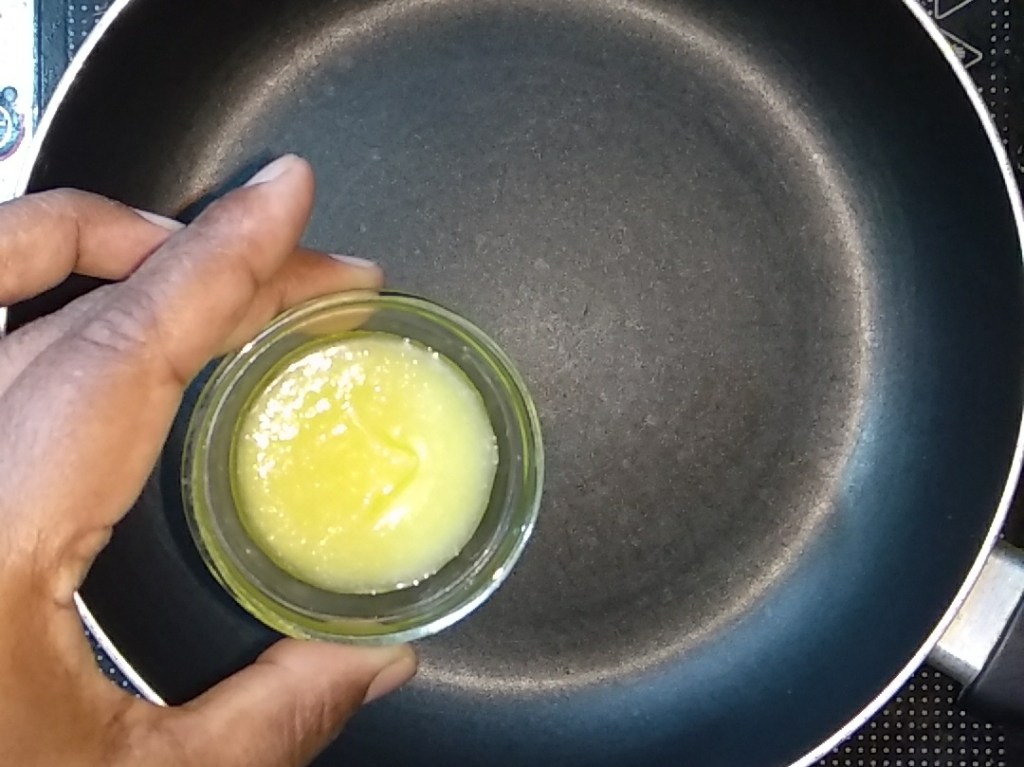 - In a pan add desi ghee.
