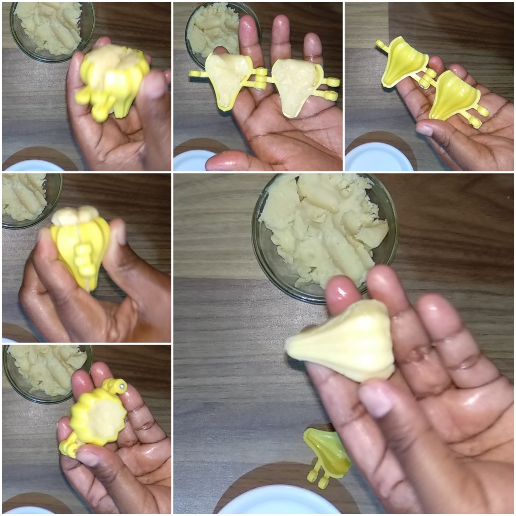 - Press the mawa nicely into the mould.