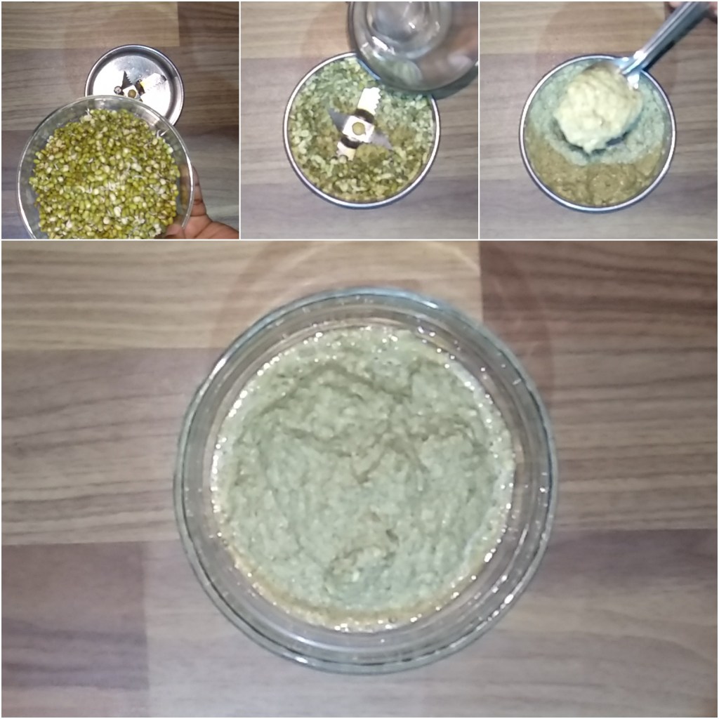 - In a bowl first soak the spilt green moong dal for 3-4 hours.