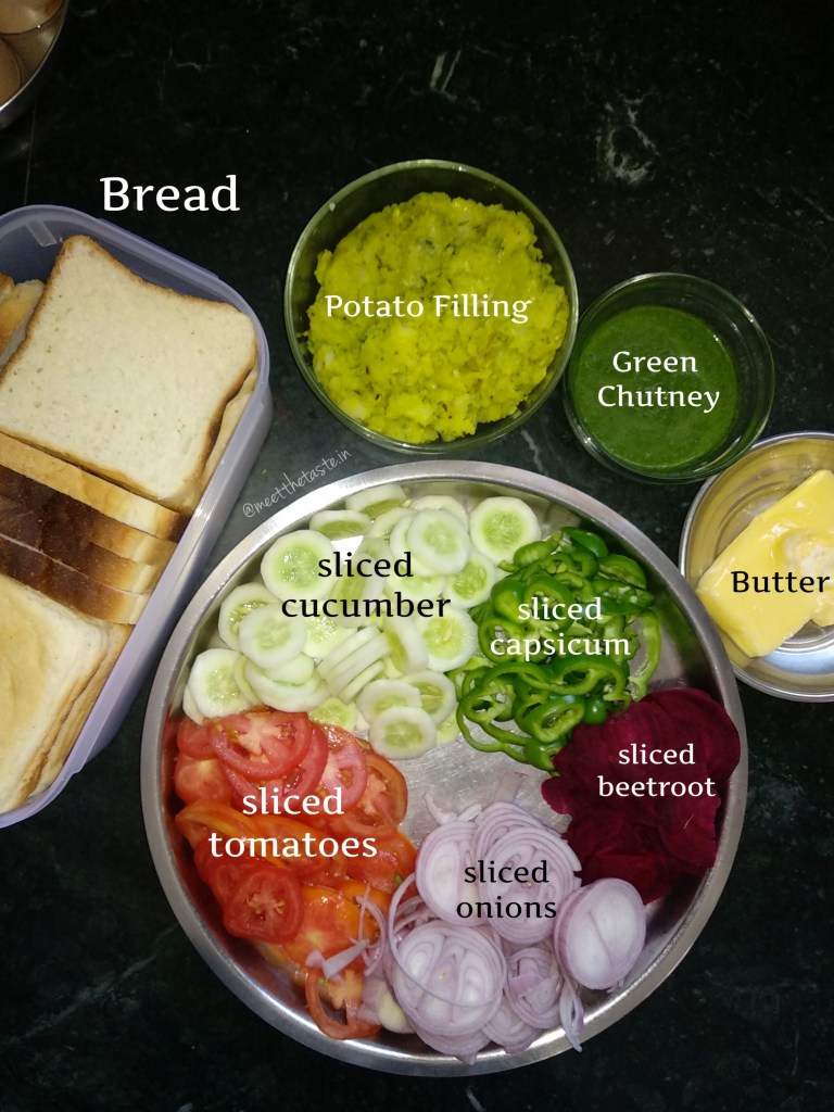 The potato masala filling is the same masala that is used in popular vada pav.This spicy potato filling makes it special and gives that unique taste to the sandwich. Also in in many chaat centres instead of spicy potato filling slices of boiled potatoes are used.