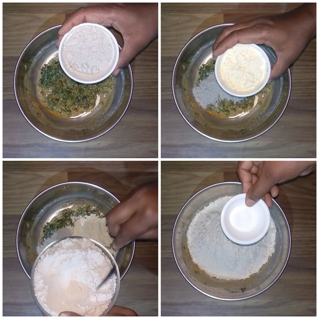 - Now add the bajra flour,besan,wheat flour and salt as per your taste.