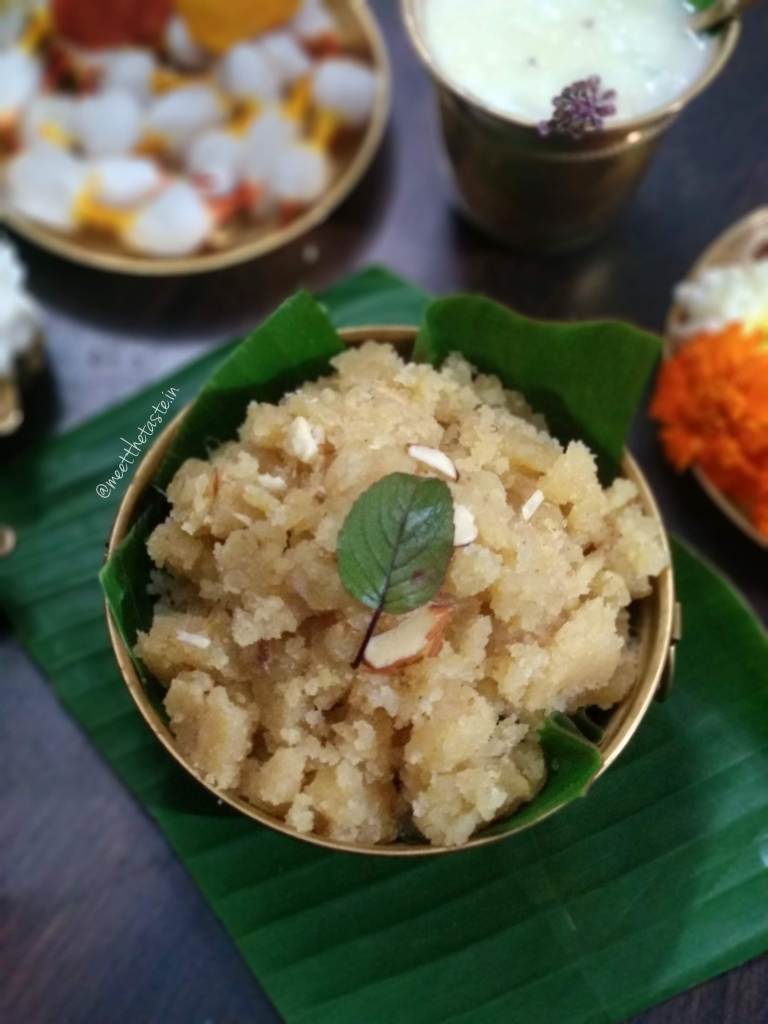 The ritual of preparing sheera is often performed by Hindu households to seek the blessings of Lord Satyanarayana for happiness,prosperity,and well-being.It is also prepared as prasad or bhog in Hindu temples or during religious ceremonies like Ganesh Chaturthi,Gokulashtmi and many other hindu festivals.