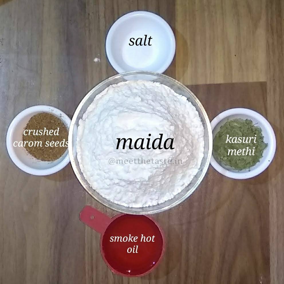 - 2 cups maida/all purpose flour/मैदा
