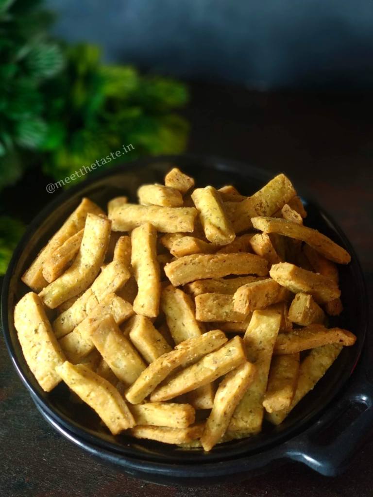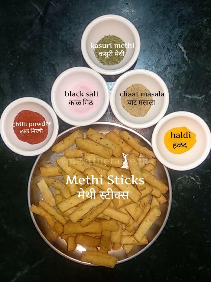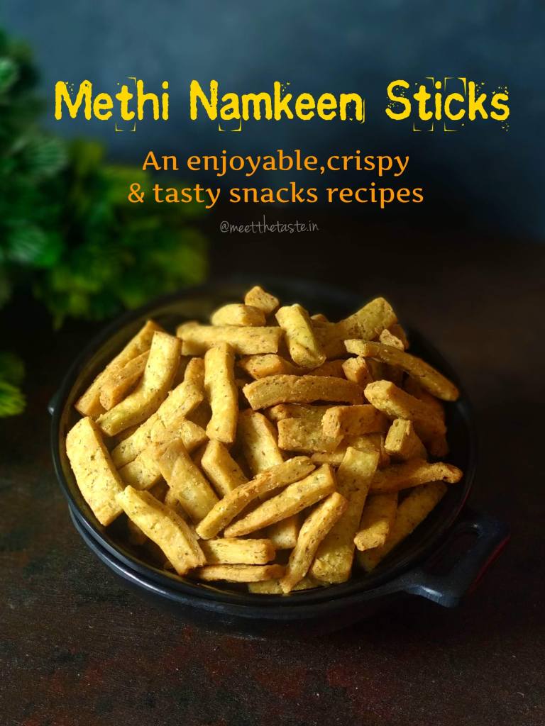 The exact measurements of the ingredients and the patience while fry results in a crispy and flaky methi sticks.You can try with different flavours also.